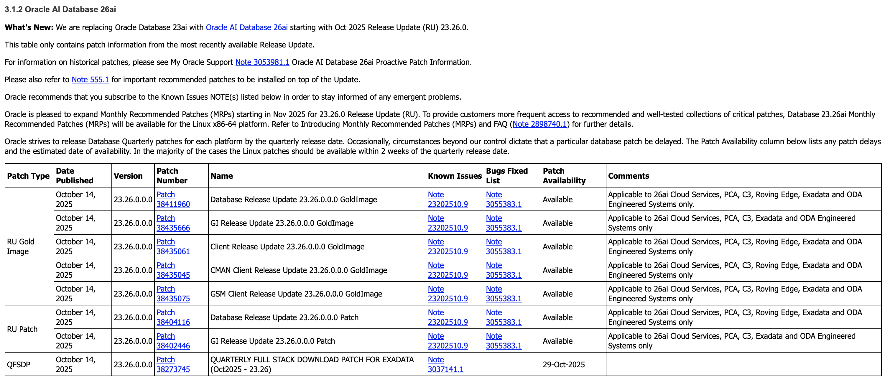 Recommended DB version: 23.26.0.0.0